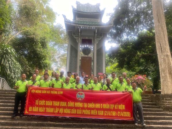 Thiết thực chào mừng kỷ niệm 65 năm Ngày thành lập Hội Nông dân Giải phóng miền Nam Việt Nam (21/4/1961 - 21/4/2026), Sáng nay, Ban Chấp hành Hội Nông dân xã Trảng Bom đã tổ chức chuyến hành trình về nguồn, thăm và dâng hương tại Khu di tích lịch sử Trung ương Cục Miền Nam và Chiến khu D.