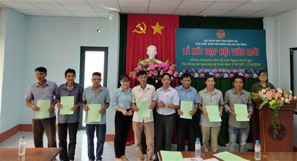 Nằm trong chuỗi hoạt động chào mừng kỷ niệm 65 năm Ngày thành lập Hội Nông dân giải phóng miền Nam (21/4/1961 - 21/4/2026), chiều ngày 20/4/2026, Hội Nông dân xã Lộc Ninh tổ chức Lễ kết nạp hội viên mới trong không khí trang trọng, phấn khởi.