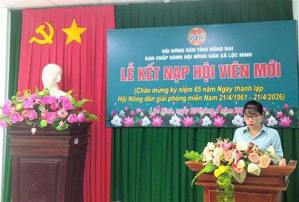 Phát biểu tại buổi Lễ, lãnh đạo Hội Nông dân xã mong muốn các hội viên mới tiếp tục phát huy tinh thần đoàn kết, tích cực lao động sản xuất, tích cực tham gia các phong trào nông dân và công tác Hội, góp phần xây dựng quê hương Lộc Ninh ngày càng phát triển, văn minh, hiện đại.